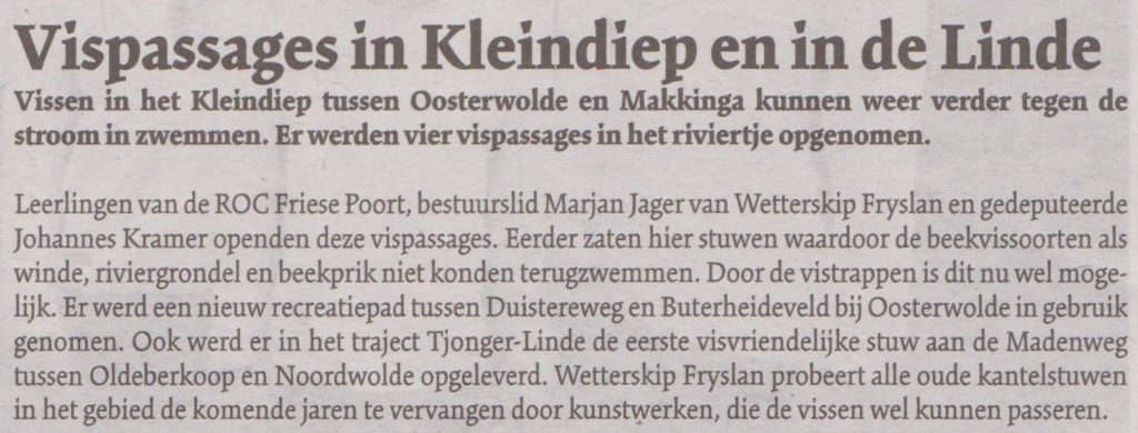 Krantenartikel NOS, 8 mei 2024, Vispassage bij Bekhofschans