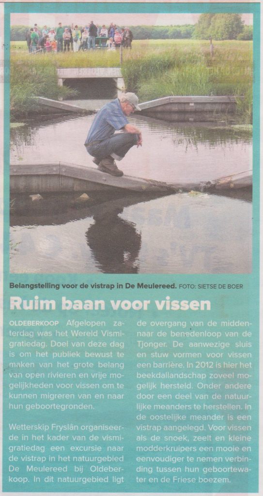 Oldeberkoop, Mei, 2014, Tjonger, Vistrap, Vismigratie, geopend, Ruim baan voor Vissen, SA, weekkrant