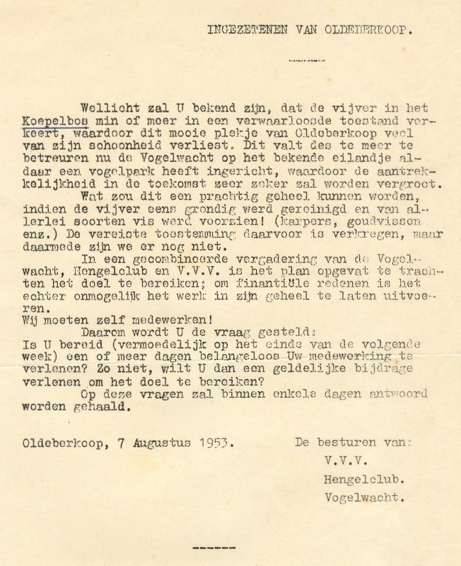 Brief aan ingezetenen 1953