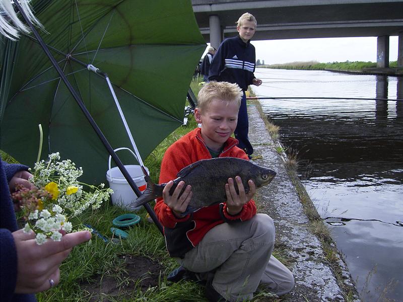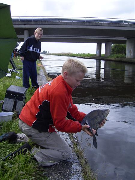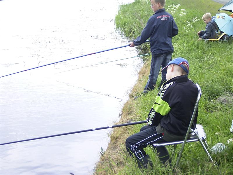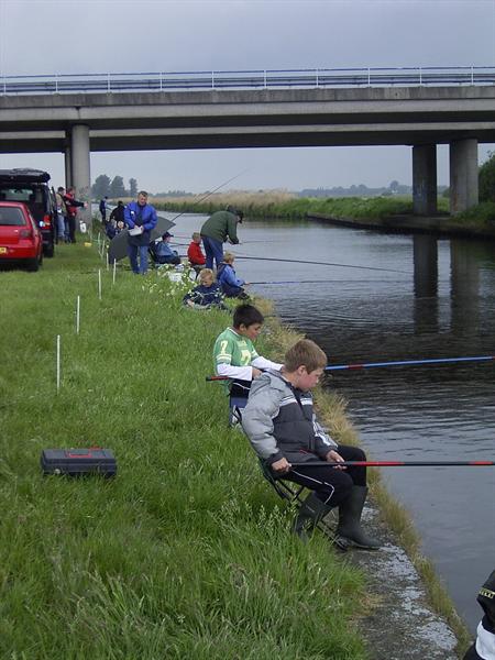Wedstrijd op 21-5-06 te Terwispel. Slecht weer, slechte vangst. 21 deelnemertjes vingen 201 cm vis met als winnaar Jeffrey Hijlkema met 47 cm.