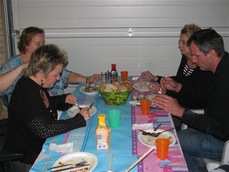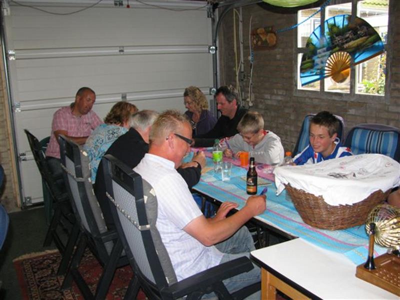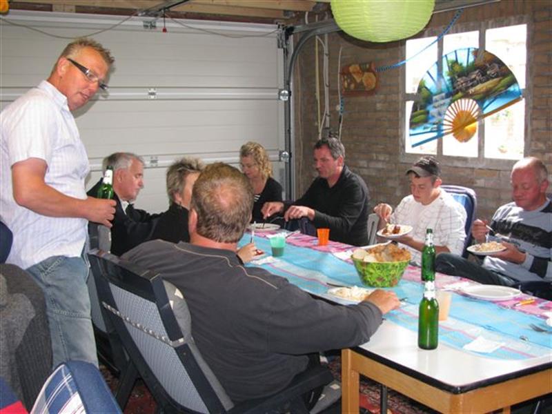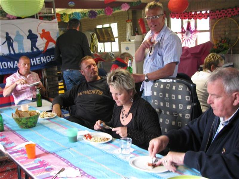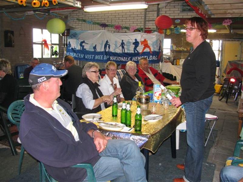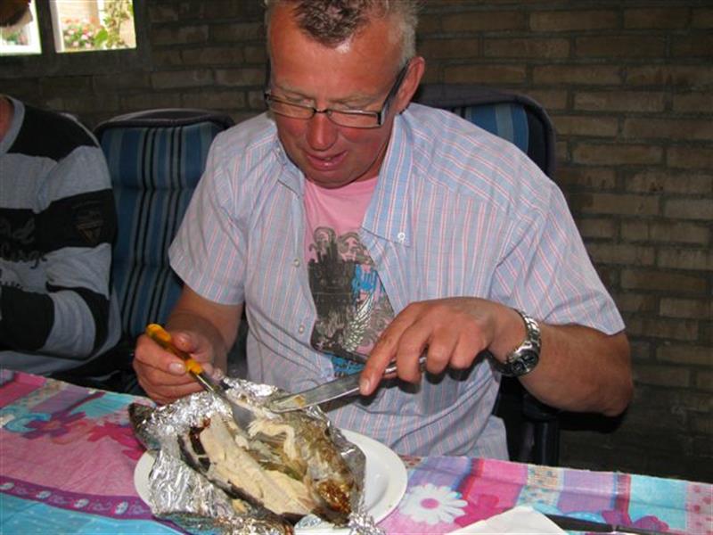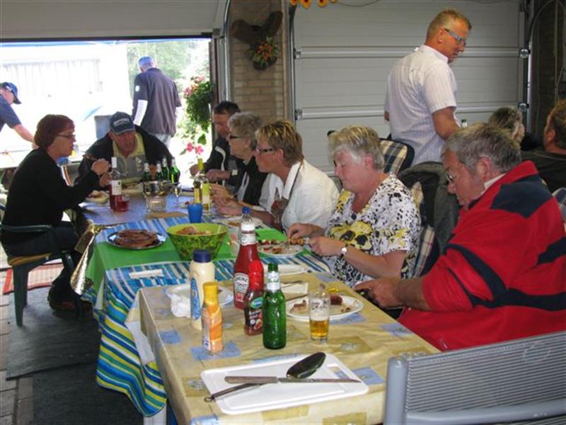 Familie visdag 28-8-2011. ’s Ochtends werd er door 9 vissers gevist op forel in de vijvers bij Ruinerwold. De vangsten waren voldoende om deze, tijdens de ’s middags gehouden BBQ, te nuttigen. De BBQ werd gehouden in de garage bij Jan Moes. De dag werd met een Bingo, geleid door Penningmeester Jan met zijn assistente Tina, afgesloten.