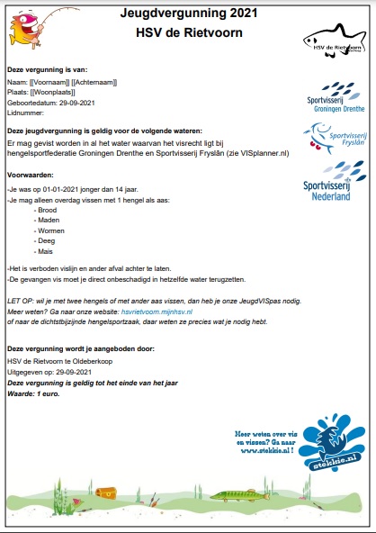 Ben je niet ouder dan 14 jaar (peildatum 1 januari) en vis je nooit met meer dan één hengel? Dan kun je GRATIS jeugdvergunning van onze vereniging aanvragen, uitprinten en binnen 10 minuten kun je aan de waterkant zitten!
