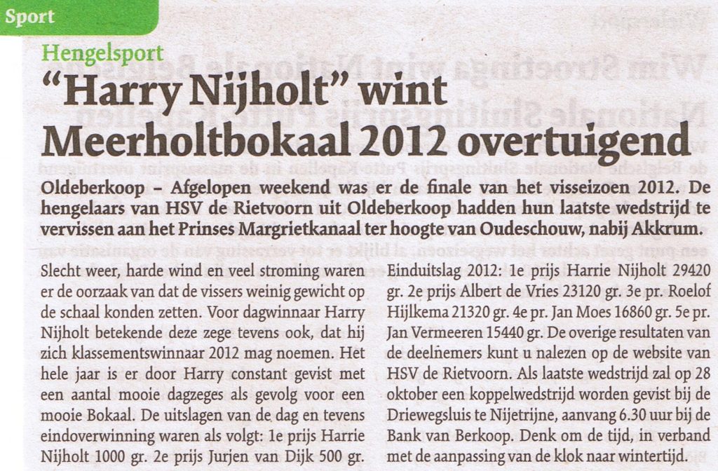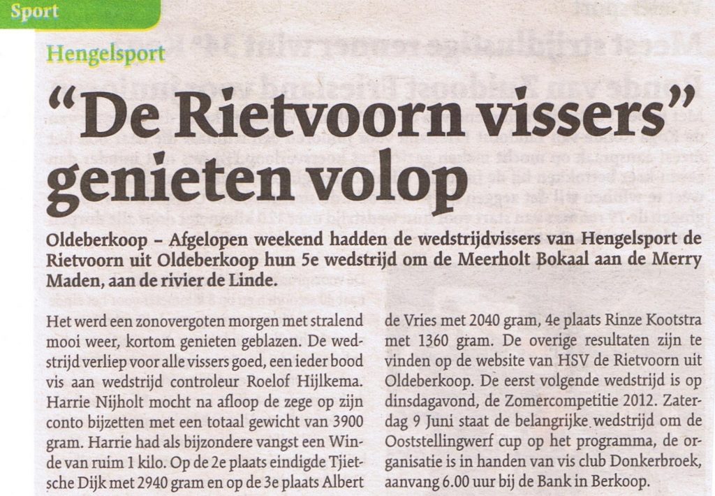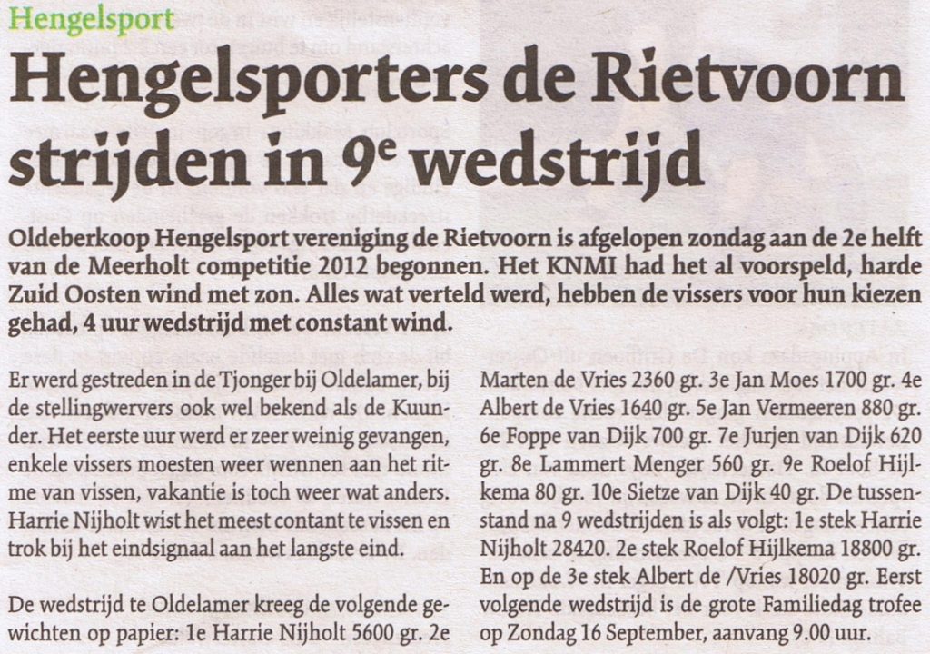 Oldeberkoop Hengelsport vereniging de Rietvoorn is afgelopen zondag aan de 2e helft van de Meerholt competitie 2012 begonnen. Het KNMI had het al voorspeld, harde Zuid Oosten wind met zon. Alles wat verteld werd, hebben…