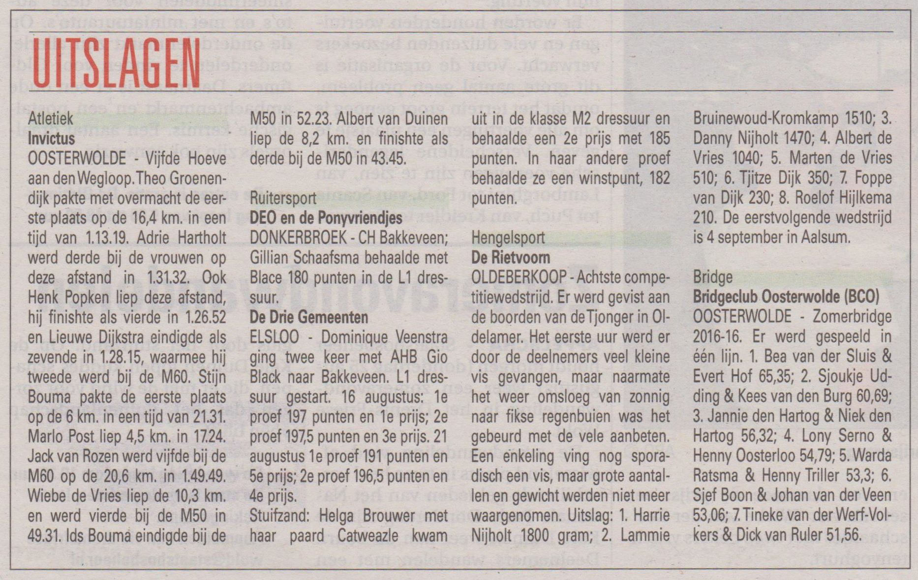 Krantenverslag Stellingwerf, 8e wedstrijd Oldelamer