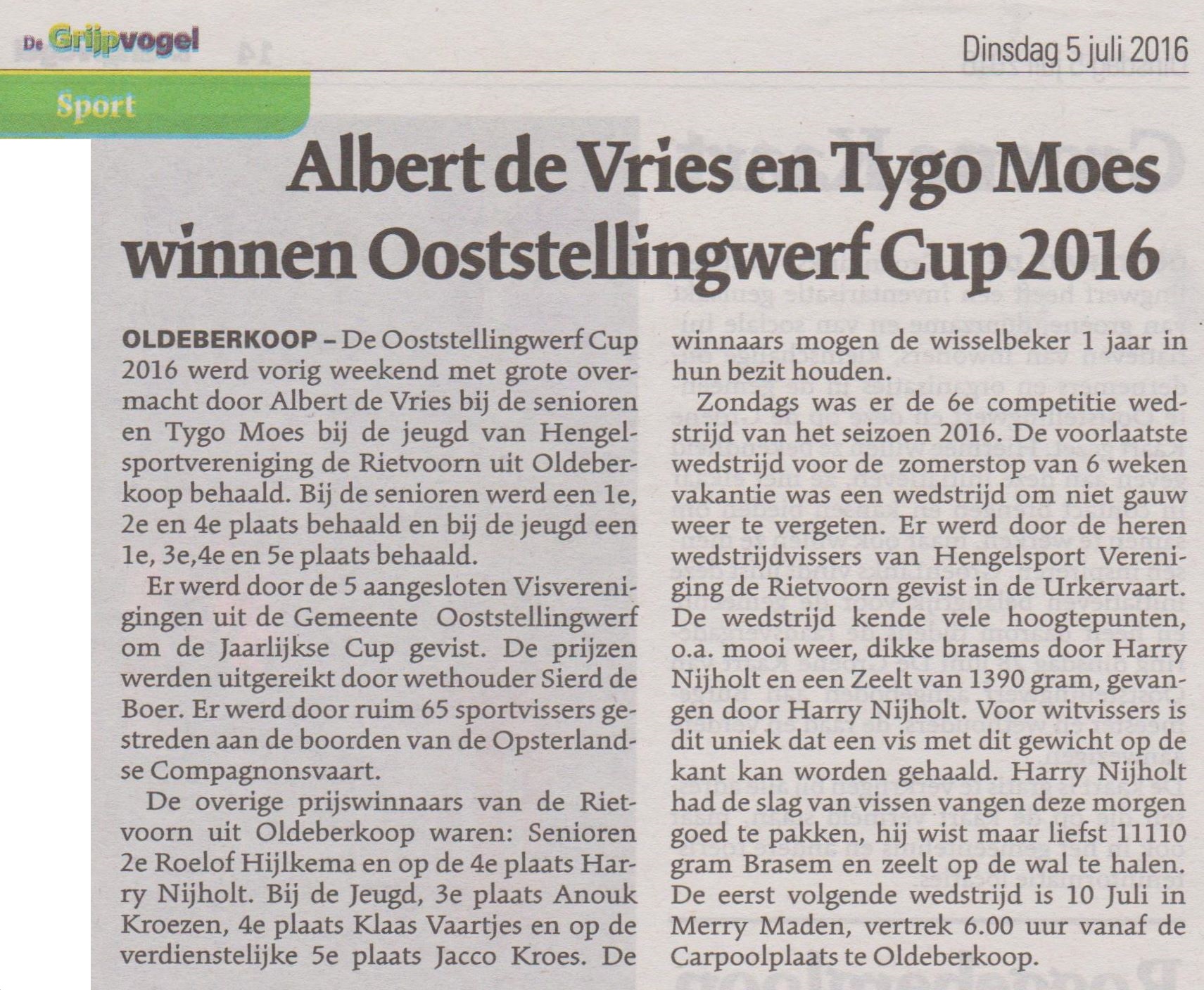 Krantenverslag, Griffioen, Stellingwerf en NOS, 29 Juni 2016