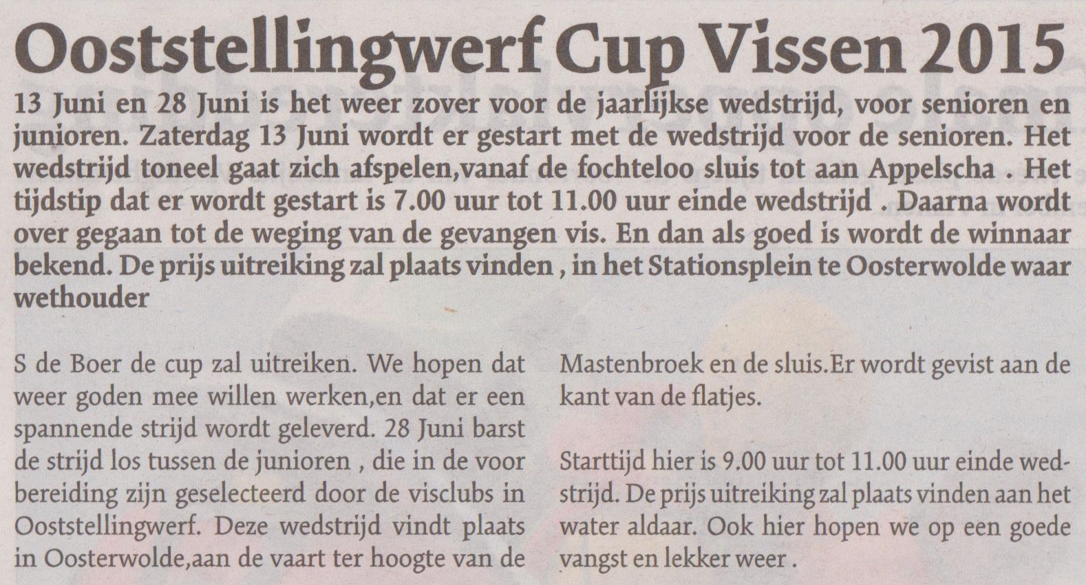 Krantenverslag, Ooststellingwerf Cup, Stellingwerf