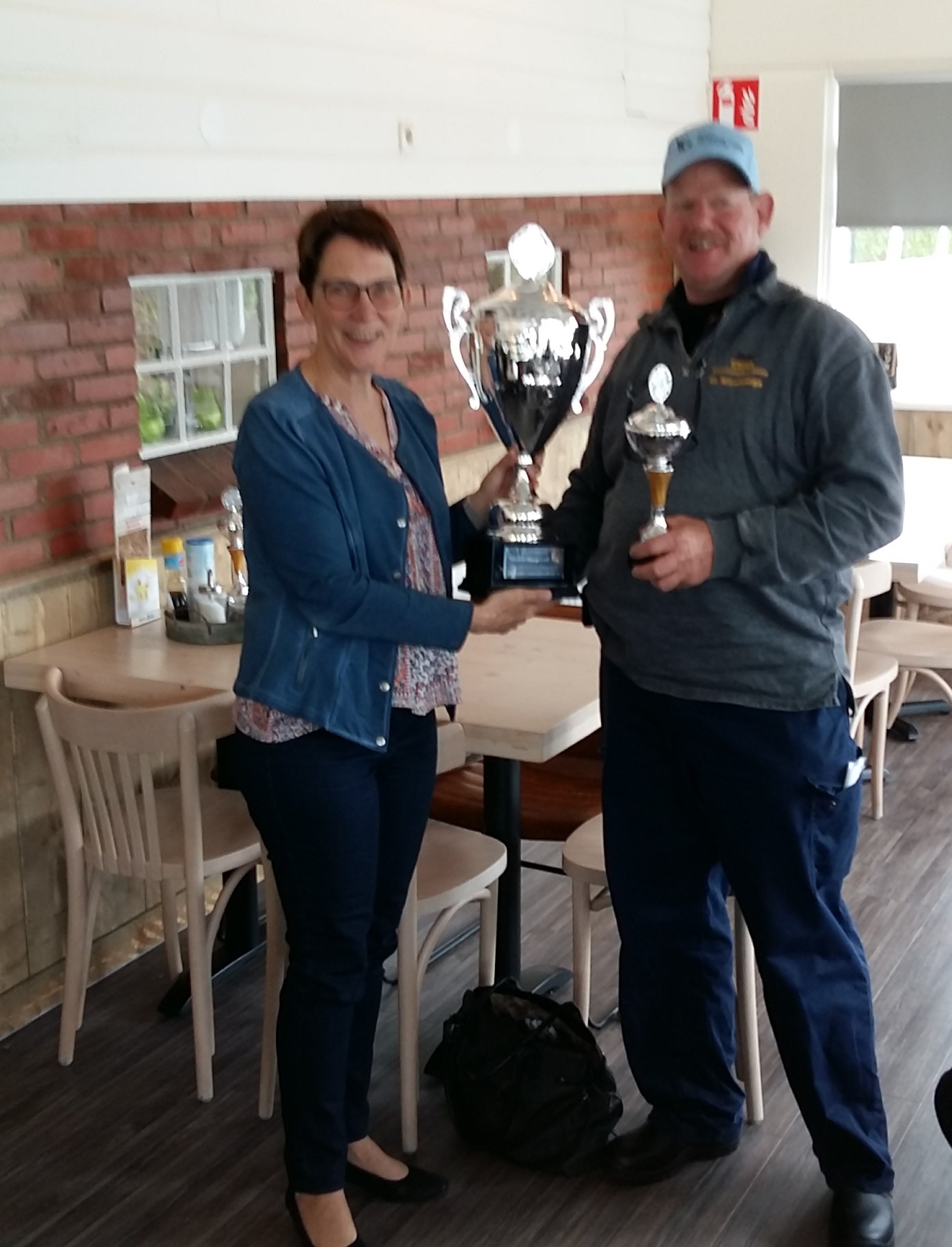 Foto, bijlage: Wethouder Fimke Hijlkema met winnaar Ooststellingwerf Cup 2019 Jan Rozenberg van de kleine Dobber uit Donkerbroek