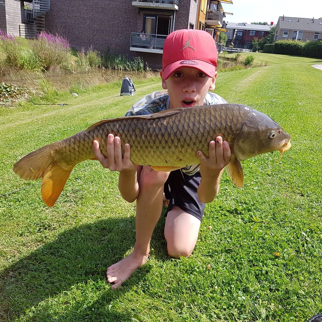 Oldeberkoop. Afgelopen week kregen we een mooie Foto binnen van Niels Dijkstra uit Zwitserland. Niels is al jaren lid van onze vereniging en komt elke zomer vissen in Friesland, Oldeberkoop. Door de spanning zijn ze vergeten om de Graskarper te wegen en te meten. De Karper is gevangen in een vijver aan de Grietmanslaan in Oosterwolde.