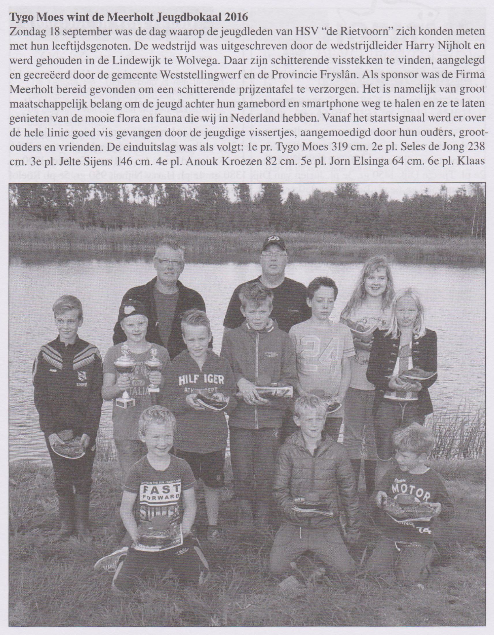 Als sponsor was de Firma Meerholt bereid gevonden om een schitterende prijzentafel te verzorgen. Het is namelijk van groot maatschappelijk belang om de jeugd achter hun gamebord en smartphone weg te krijgen en ze te laten genieten van de mooie Flora en Fauna welke wij in Nederland hebben. Vanaf het startsignaal, gegeven door jeugdcoördinator Roelof Hijlkema werd er over de hele linie goed vis gevangen door de jeugdige vissertjes, aangemoedigd door hun ouders, grootouders en vrienden.