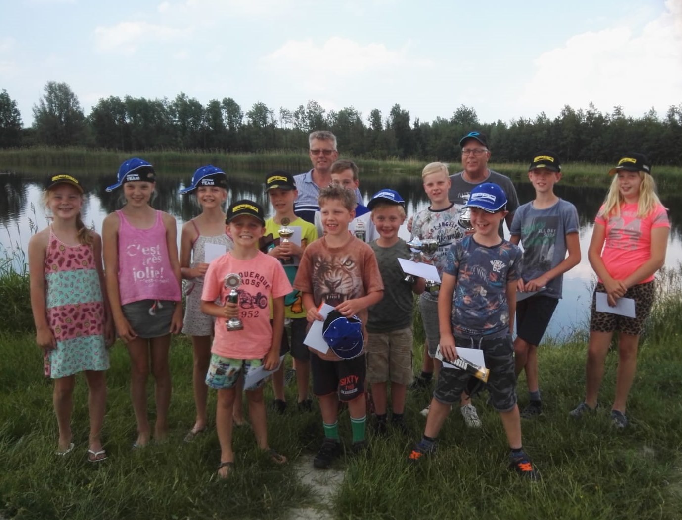 Groepsfoto, deelnemers Jeugdwedstrijd, Lindewijk