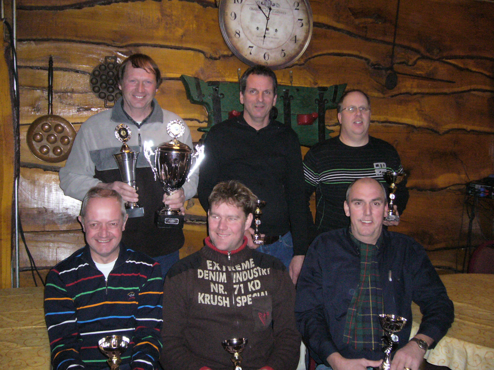achterste rij, v.l.n.r Roelof Hijlkema, Lammert Menger en Harrie Nijholt