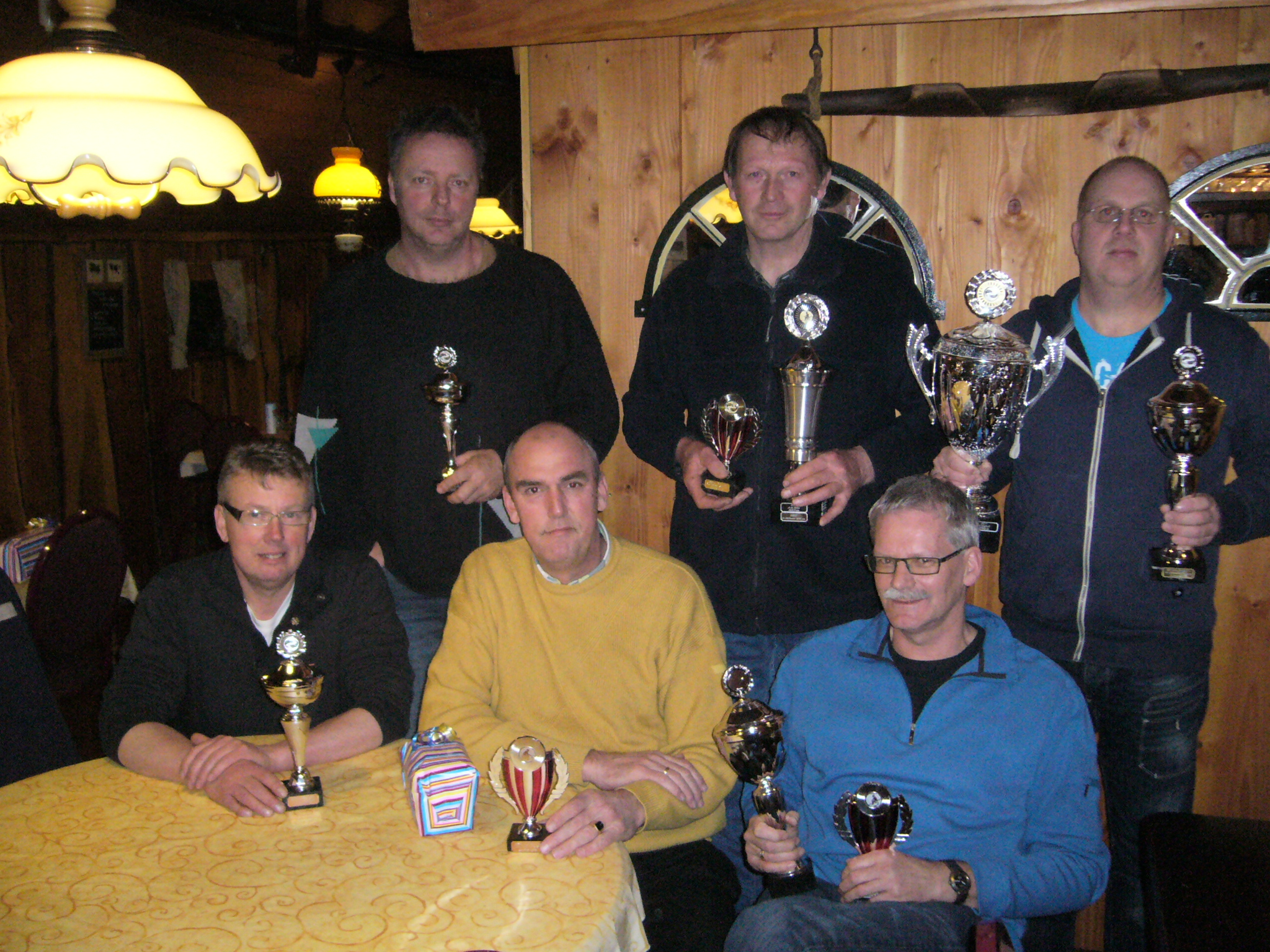 achterste rij, v.l.n.r. Jan Vermeeren, Roelof Hijlkema en Harrie Nijholt